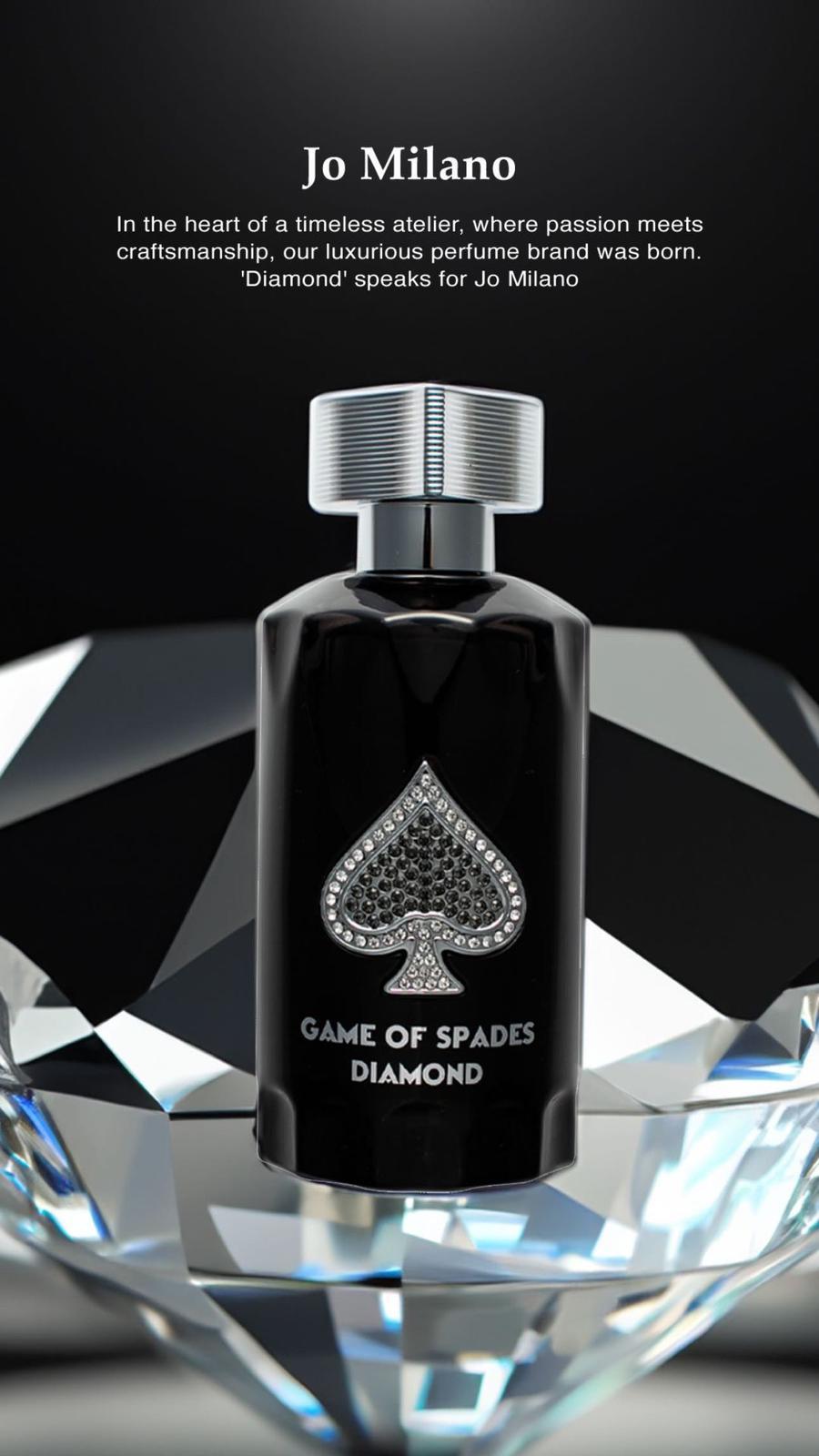 Game of Spades Diamond by Jo Milano is a luxurious unisex parfum blending bold spices with warm amber and creamy vanilla. A scent that radiates elegance and depth.