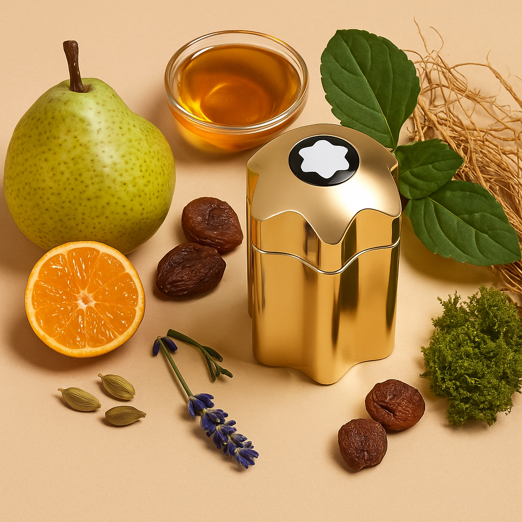 It opens with pear, mandarin, and cardamom, moves into warm notes of lavender, honey, and fruits, and finishes with a rich base of patchouli, vetiver, and moss.
